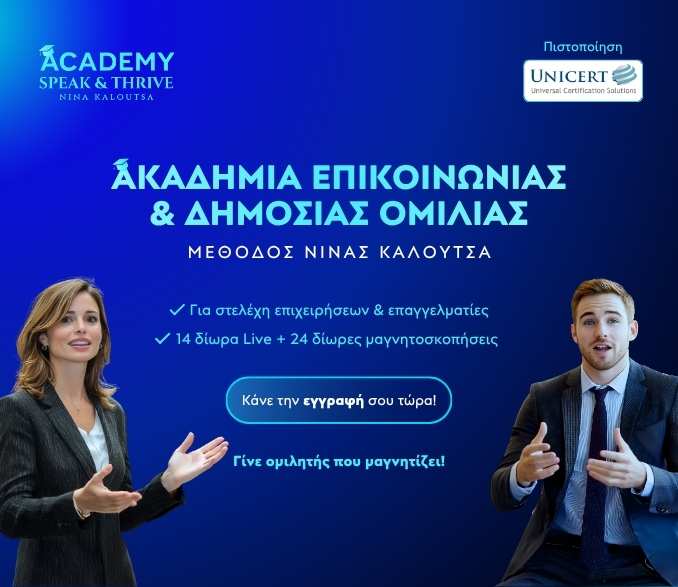 Πιστοποιημένο εκπαιδευτικό πρόγραμμα για ανθρώπους αποφασισμένους να μιλούν, όπως θα μιλούσε η προσωπικότητα που επιθυμούν να γίνουν!Σάββατο 8 & Κυριακή 9 Μαΐου 2026