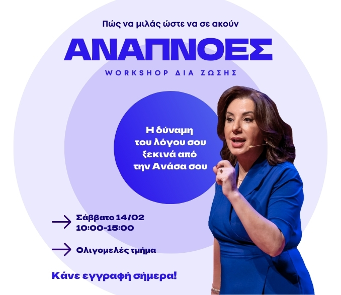 Μάθε μαζί μου τις 8 διαφραγματικές αναπνοές της Μεθόδου μου για να μιλάς ώστε να σε ακούν!Έναρξη: Τετάρτη 18 Φεβρουαρίου 2026